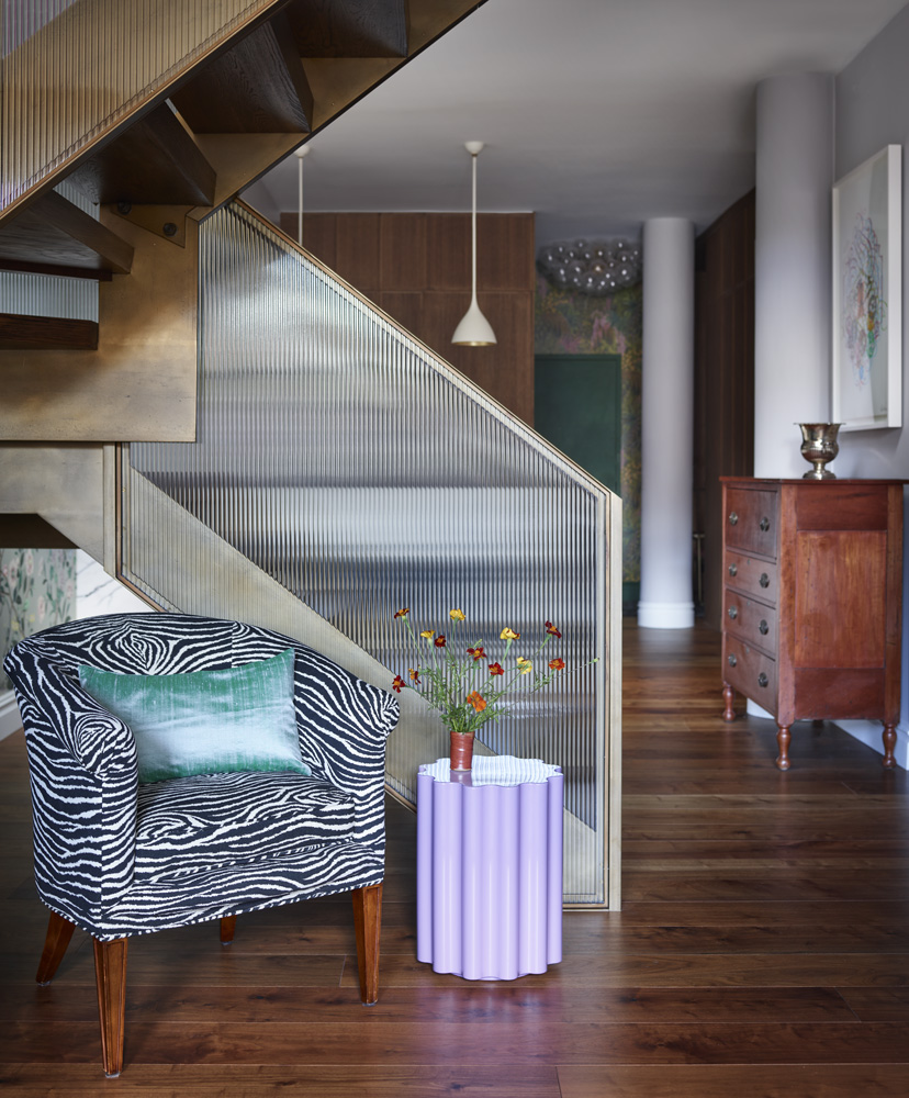 This comprehensive renovation of an 1,800-square-foot duplex penthouse in the Union Square neighborhood of Manhattan beautifully accentuates the space's unique character, including its distinctive Gothic windows and impressive height, while reflecting the owner’s eclectic style. The project involved replacing the heavy interior spiral staircase, which was used as an opportunity to create a more comfortable, code-compliant, and translucent focal point for the home.